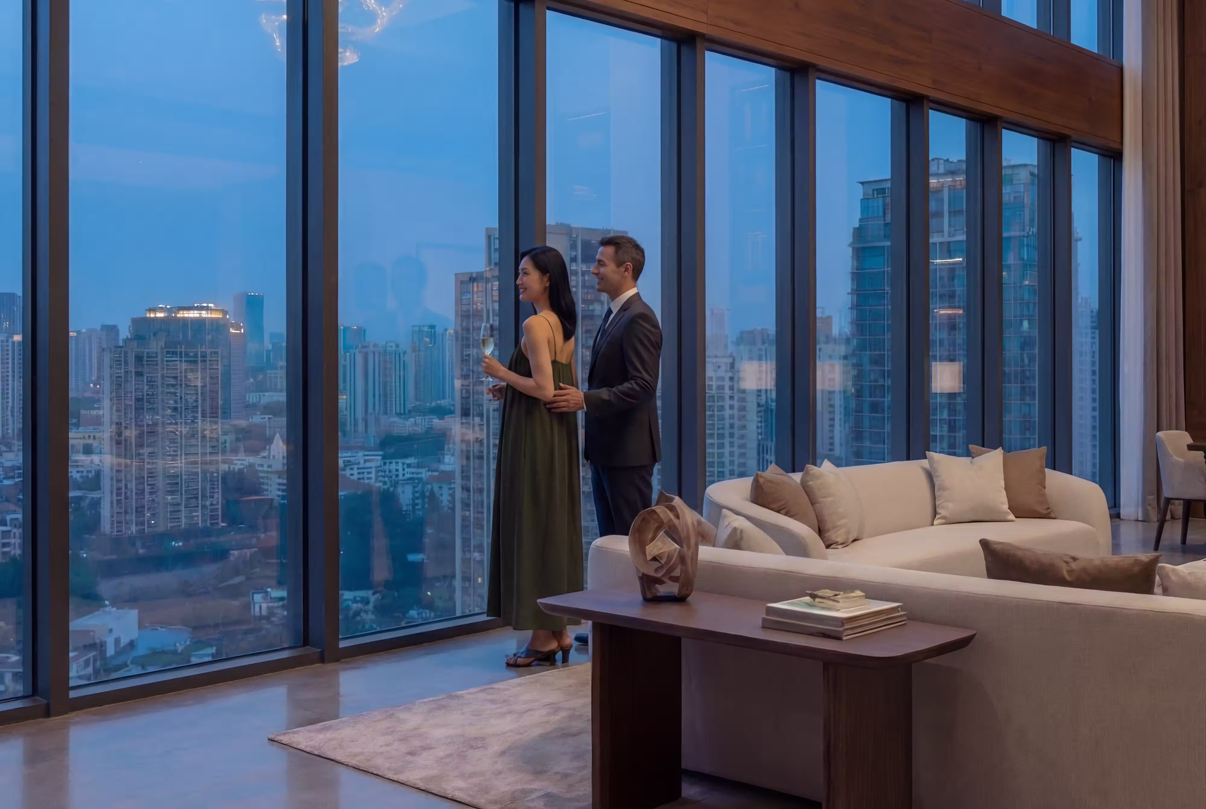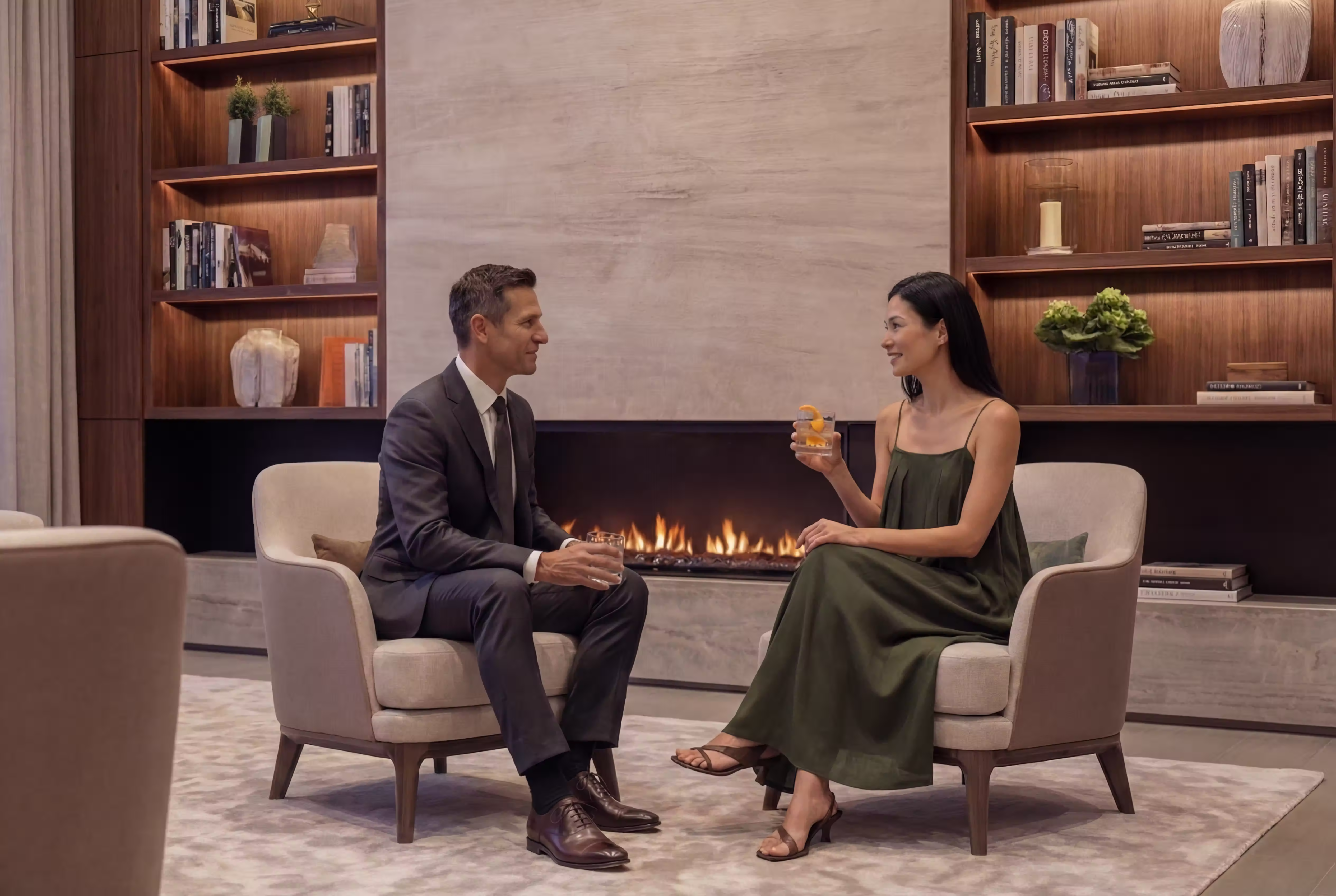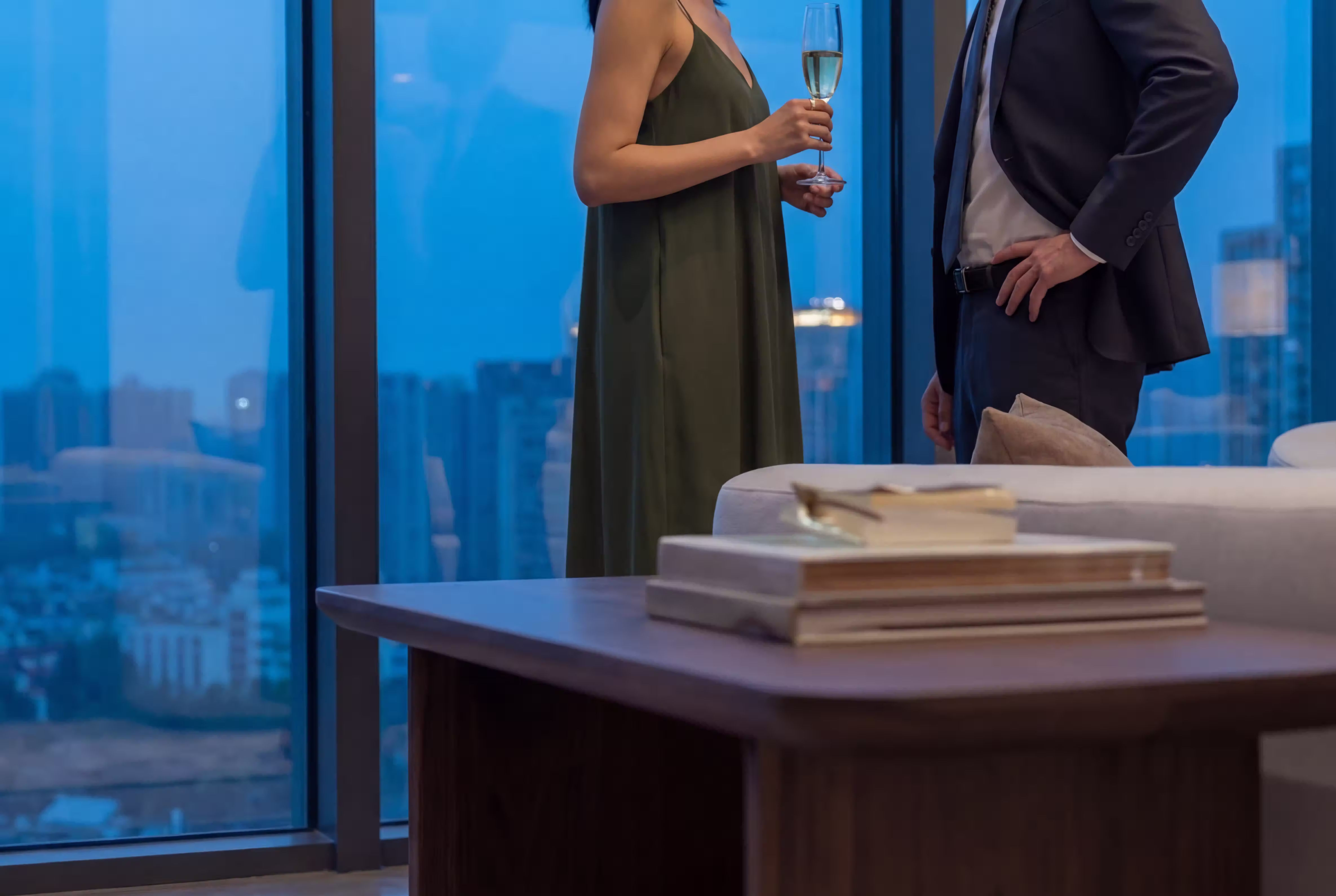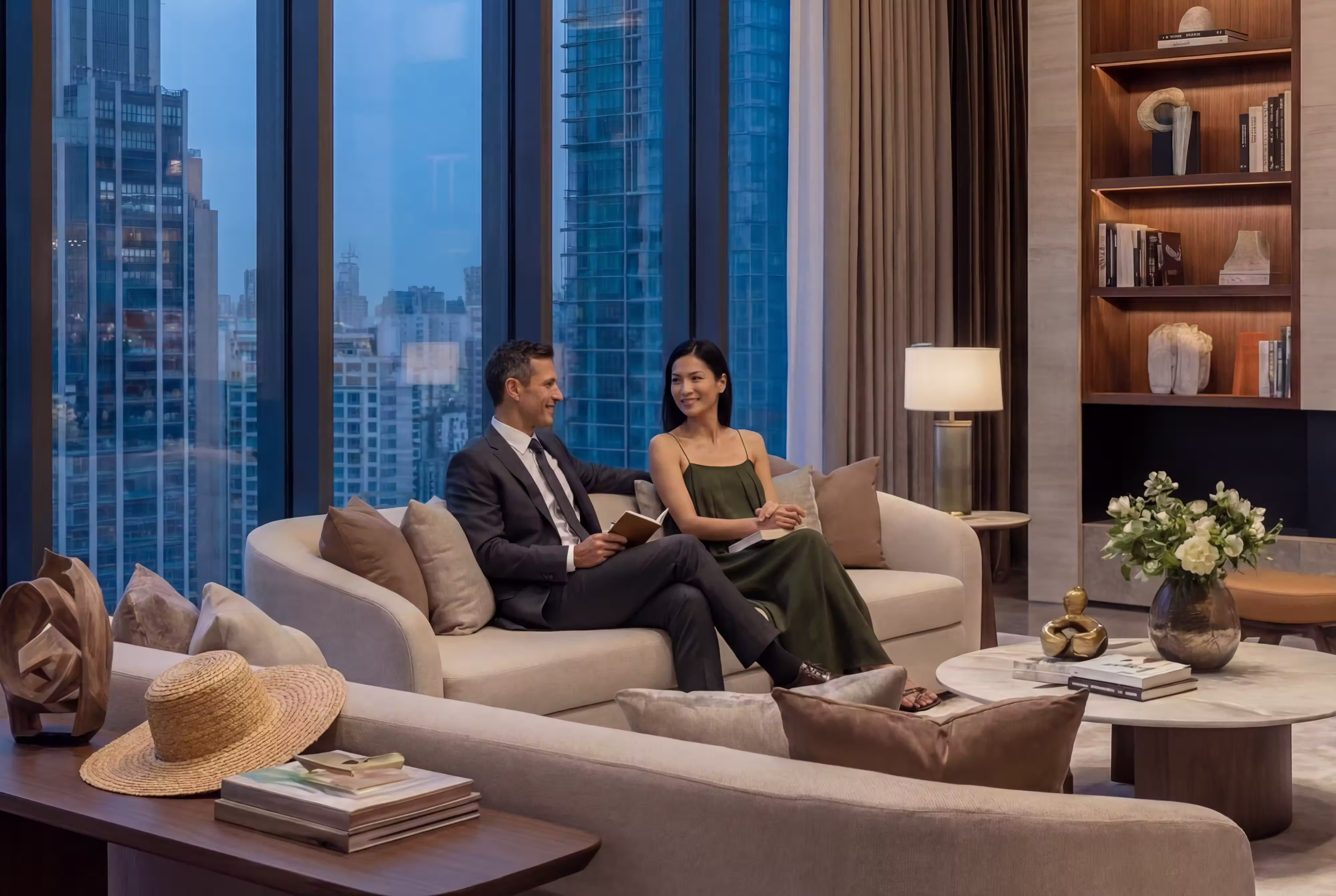 A quiet evening narrative set within the penthouse lounge — introducing warm, believable guest presence while preserving real architecture, spatial behavior and interior design intent. Delivered as a cohesive lifestyle collection for use across website, in-room collateral and seasonal brand storytelling.