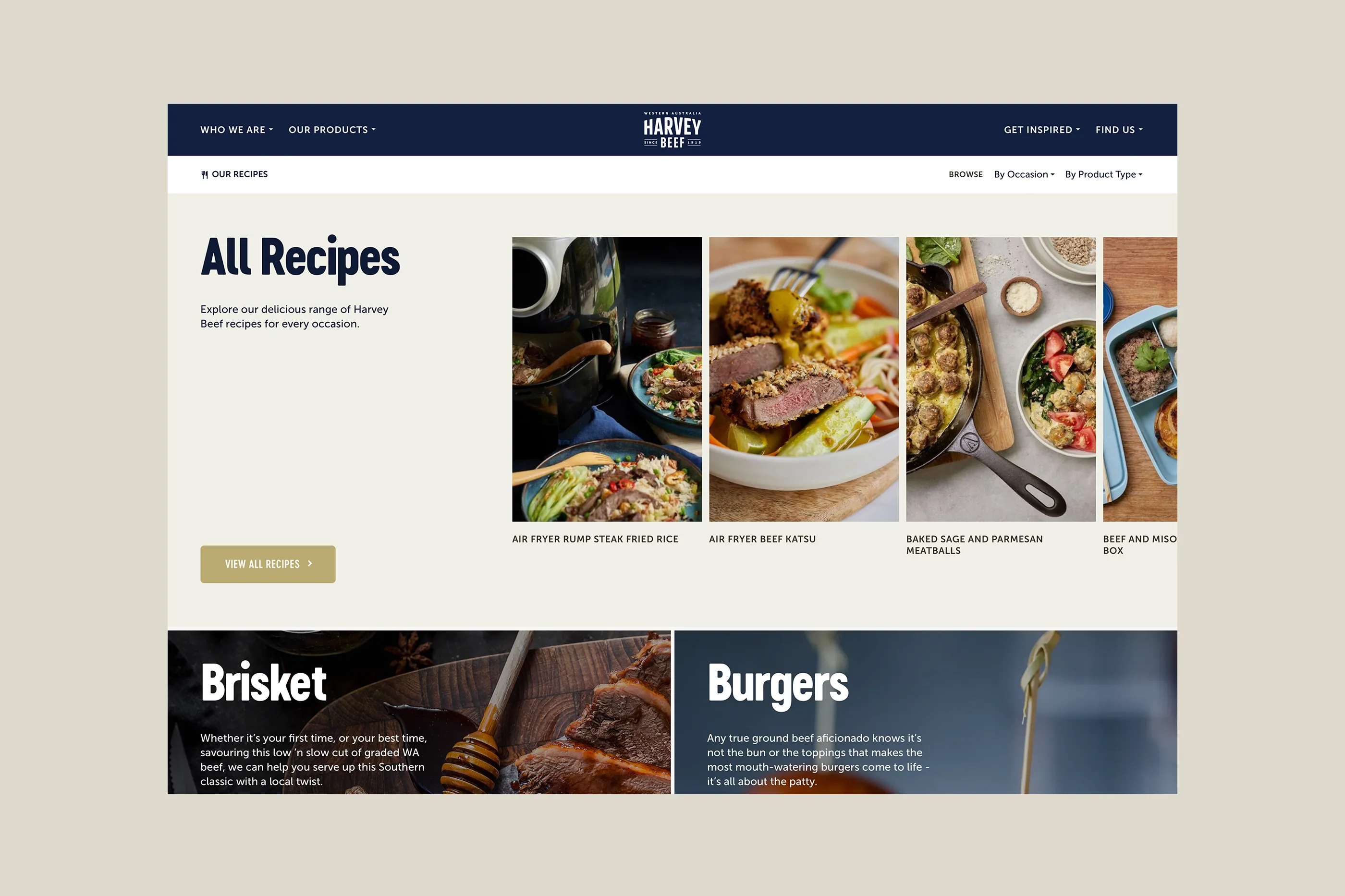When we first met with the Harvey Beef team. they were concerned that their website no longer aligned with their desired brand positioning, nor did it have many of the functionalities and content required to increase brand engagement, improve product awareness and support the sales and repurchasing process.
